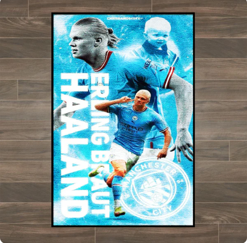 Unleash the power of Erling Haaland with this electrifying Haaland Football Rug, crafted for fans who admire strength, precision, and pure determination. Inspired by one of the most unstoppable forwards in world football, this rug brings raw energy and confidence to any space.